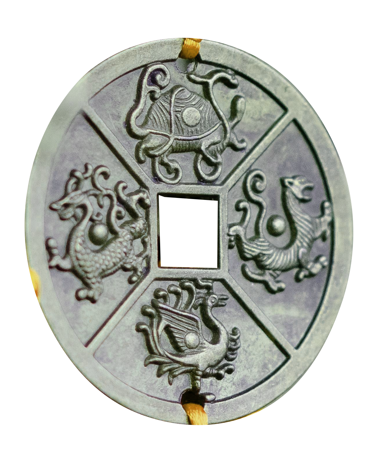 Prenons une ancienne sapèque chinoise, cette pièce ronde percée en son centre d’un carré. (voir photo)